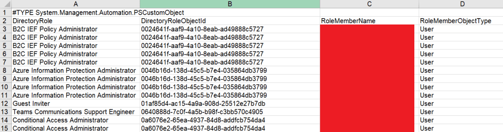 The first thing we are going to do is, exporting all the members in each admin role, because users in such roles are considered ‘privileged’