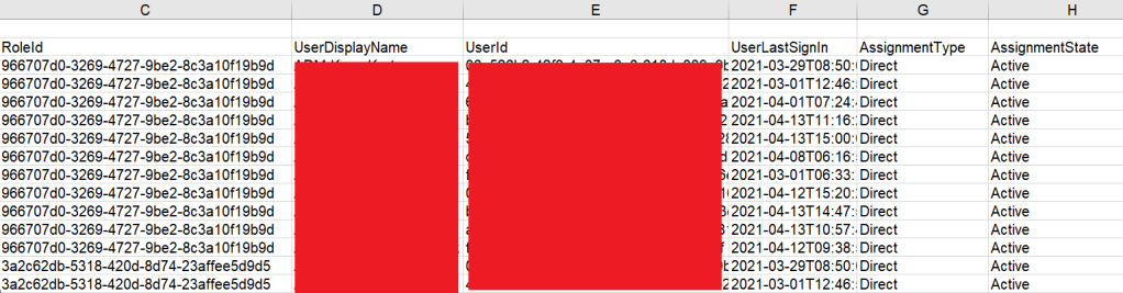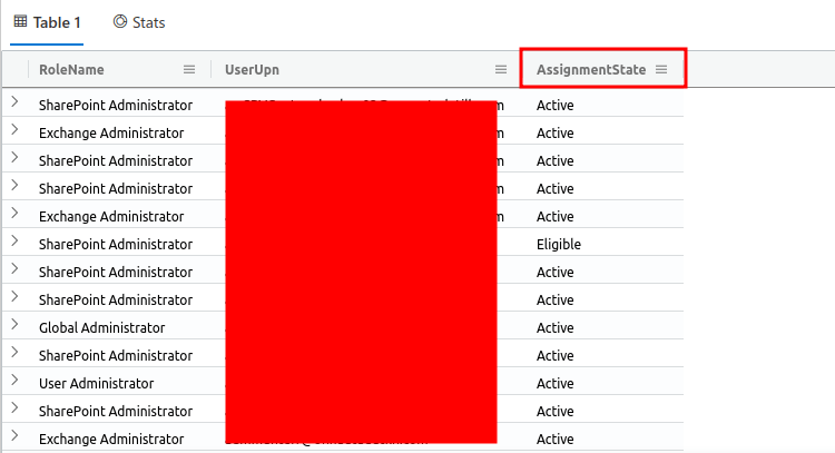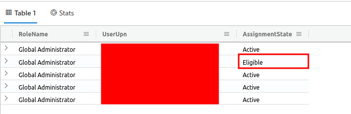 The first step is to see if an organization was using Privileged Identity Management (PIM). As we still remember, we have exported all the PIM assignments with the PowerShell module. The data is ingested in Azure Data Explorer, which we can query.
