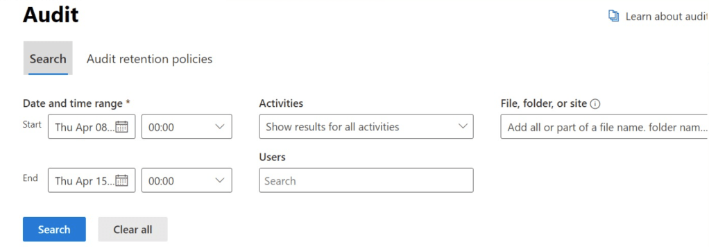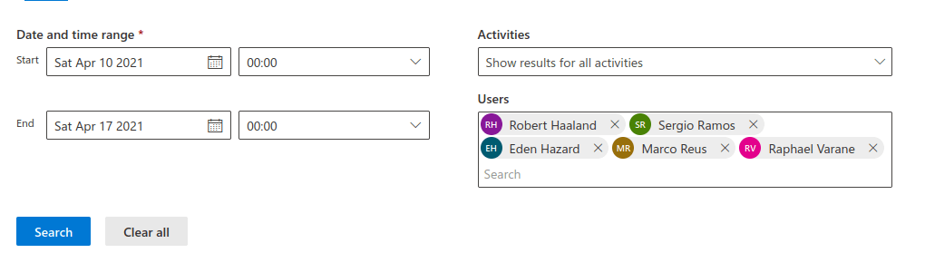 Another important thing to note is, that once you search for data beyond 90 days. It will only show the users with an E5 license in the results. Other users that don’t have an E5 license will be left out.