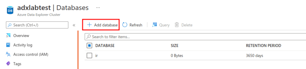 The first thing we have to do is create an Azure Data Explorer cluster. Once we have done that, we can start creating a database.