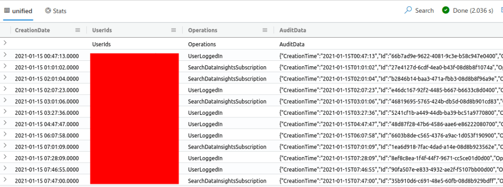 Unified Audit logs stores everything in a unstructured format, which can be a hard to parse out all the fields into different columns. However, as we demonstrated in this blog post. It is possible though!