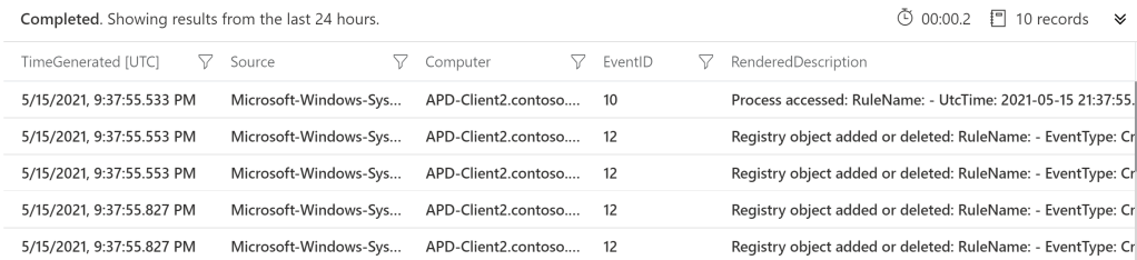 | project TimeGenerated, Source, Computer, EventID, RenderedDescription