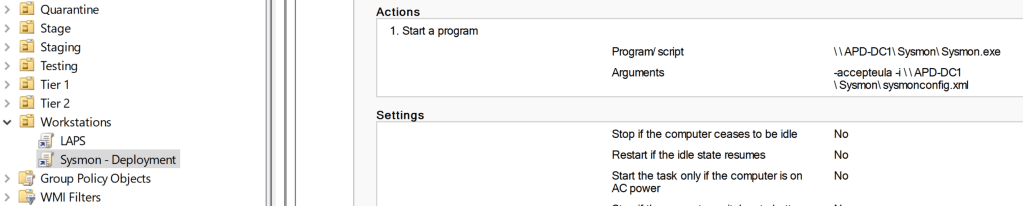2. Now we have to configure our Group Policy and roll out Sysmon on the OUs that contains the workstations and member servers