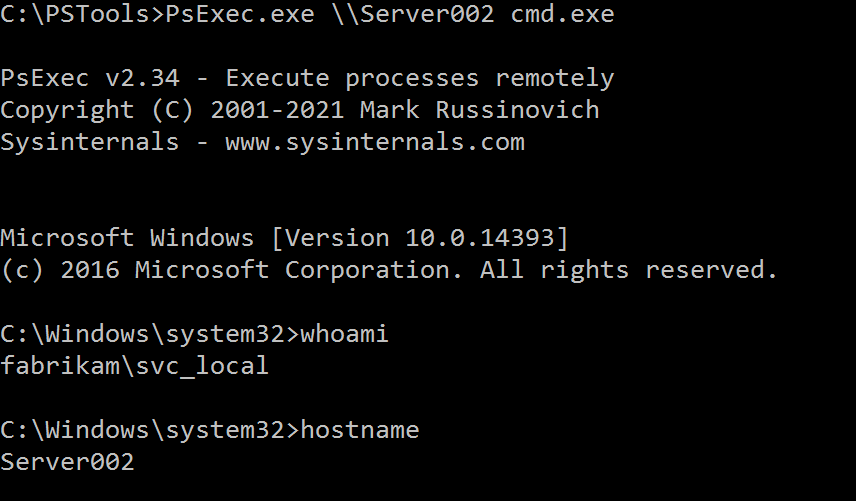 We can now PsExec against the Server002$ host, since Moreno is a local admin on the Server002$ host.