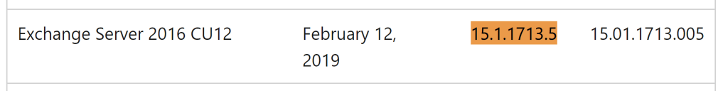 This means that on this date, we saw that Exchange Server 2016 CU12 was installed.